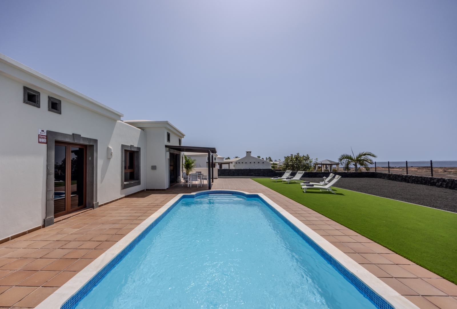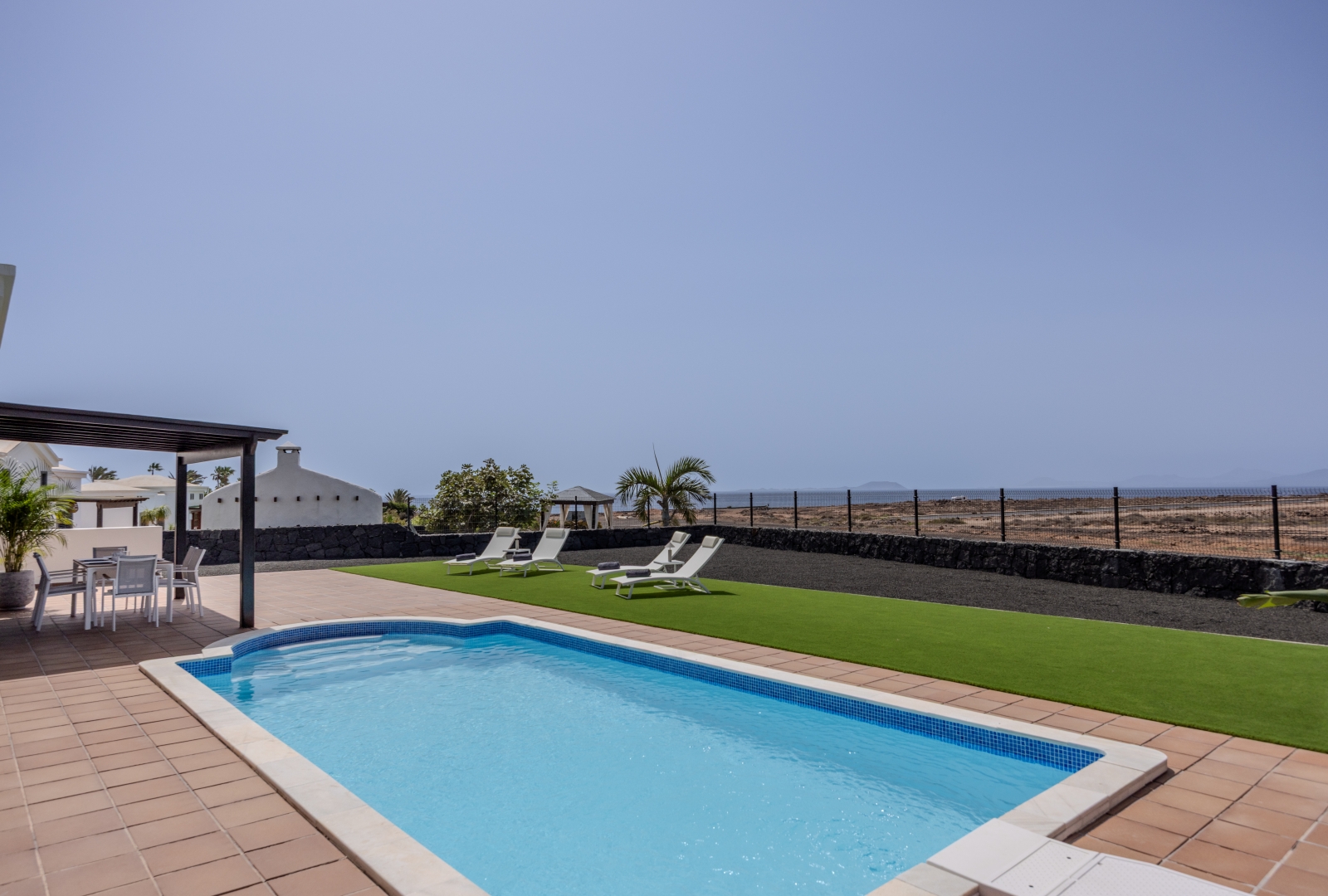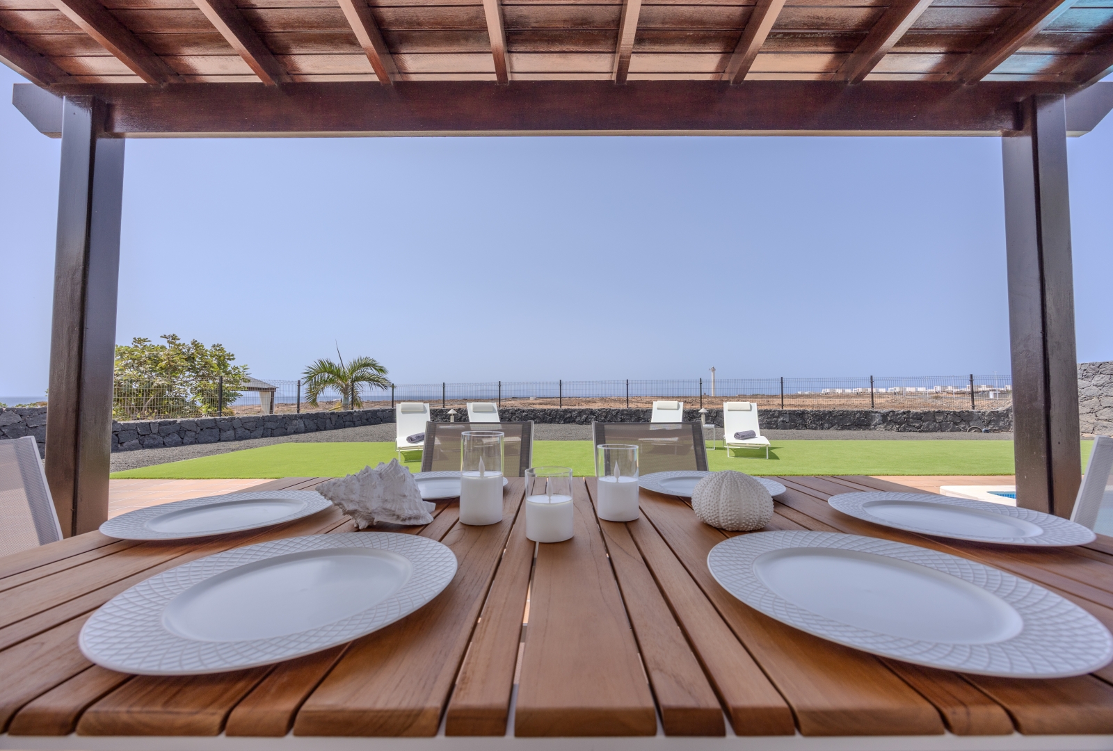 Set on a large private plot with impressive sea views, this immaculate villa is in true show house condition. The outdoor areas are designed for both privacy and comfort, with expansive terraces and landscaped, low maintenance gardens , a perfect setting to relax or entertain while enjoying the beautiful Playa Blanca climate and views. A shaded al fresco dining area completes the outdoor haven, ideal for long, leisurely evenings under the sun or a cold drink as the sun sets.