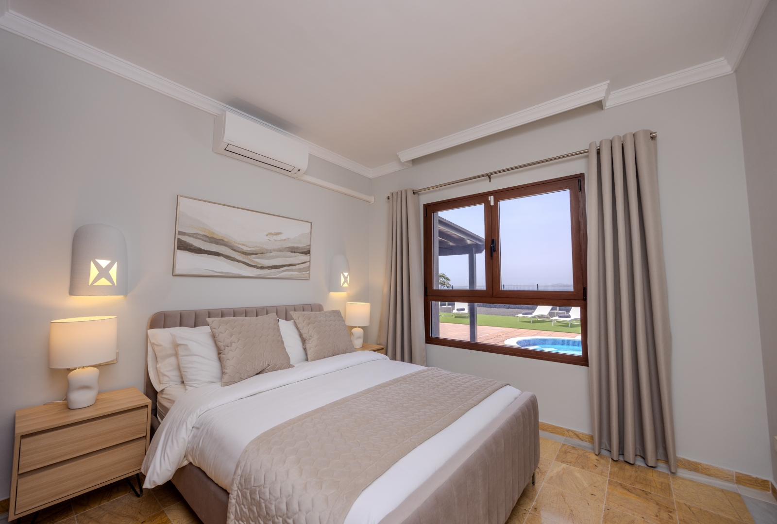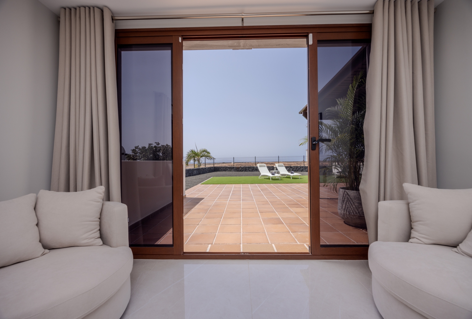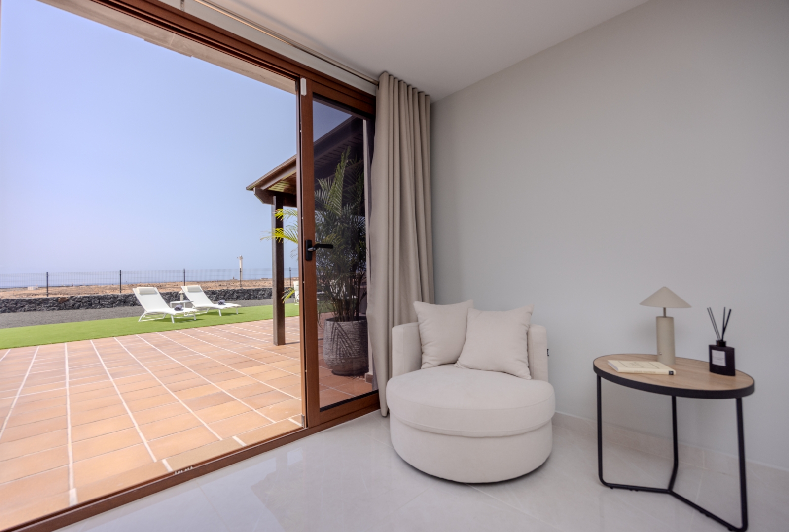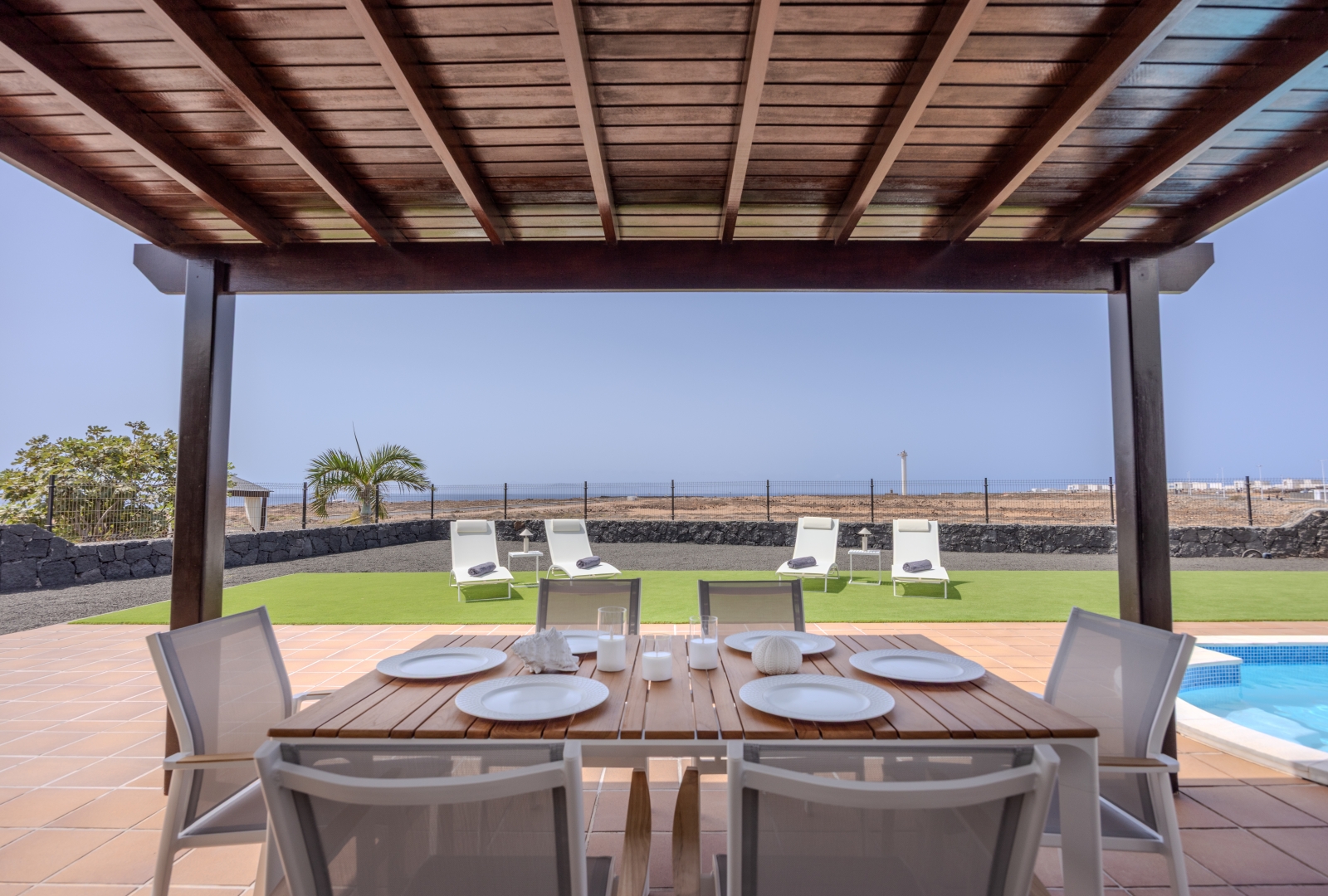 Set on a large private plot with impressive sea views, this immaculate villa is in true show house condition. The outdoor areas are designed for both privacy and comfort, with expansive terraces and landscaped, low maintenance gardens , a perfect setting to relax or entertain while enjoying the beautiful Playa Blanca climate and views. A shaded al fresco dining area completes the outdoor haven, ideal for long, leisurely evenings under the sun or a cold drink as the sun sets.